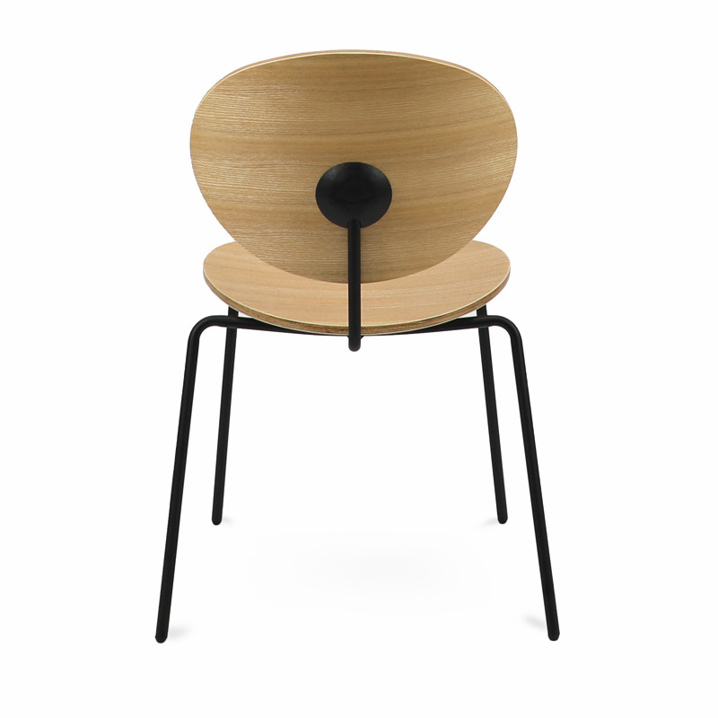 Customized modern metal chair with wood seat supplier. This modern looking chair features an elliptical seat and a slightly curved backrest for support and comfort. Both the curved seat and backrest for comfy support are nicely formed and finely proportioned and looks modern. The round metal tube frame which not only provide good support but also leans a modern overlook for the chair to combine with the veneer seat and back. Its minimalist style which is stackable. It is a good choice for living room chair, dining chair, kitchen chair, side chair, cafe chair.